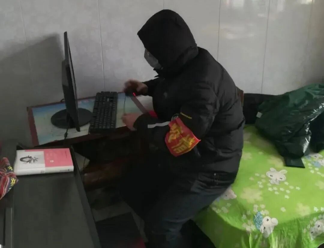 2月28日中午12左右,绥棱县水果市场小区值守点,一名住户手里提着电脑主机,焦急地对值守干警说:“同志,让我出去一下,着急找人帮我修电脑啊!”