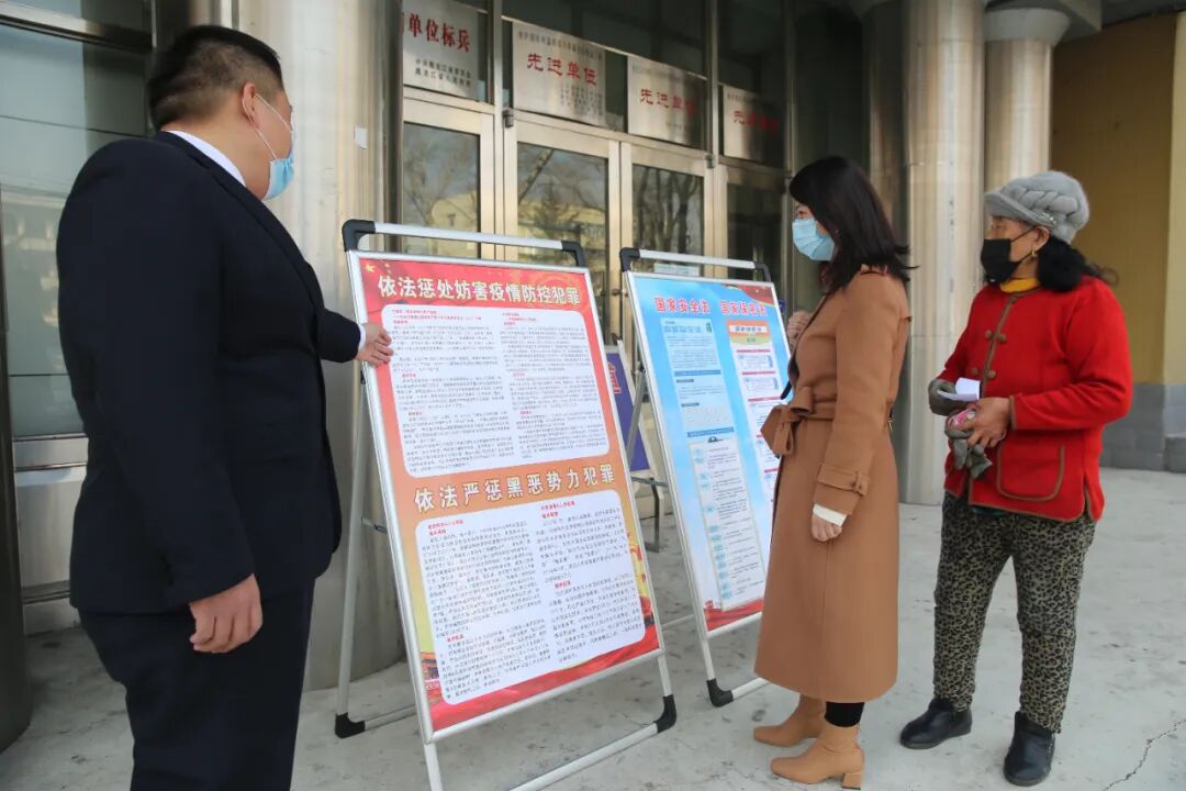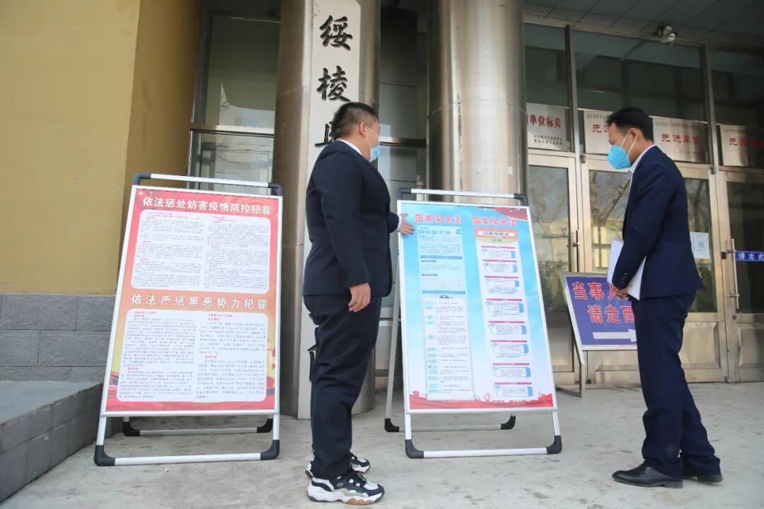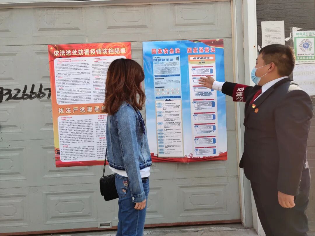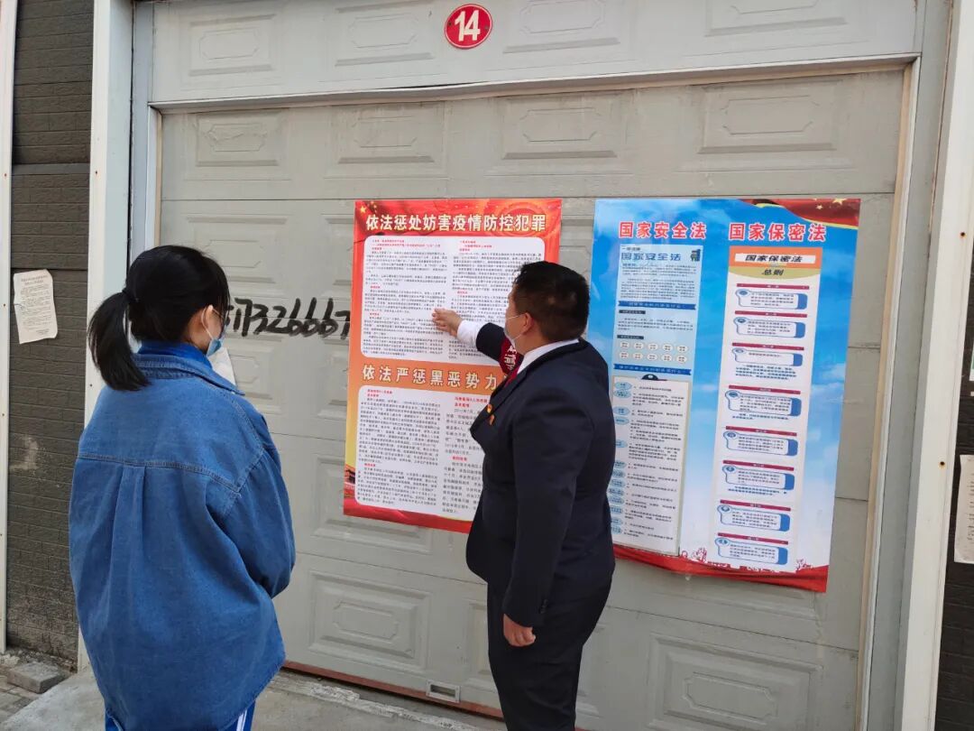 助力疫情防控。在干警值守的小区张贴宣传挂图,通过强化以案释法及普法宣传,促进疫情防控工作的有力开展。
