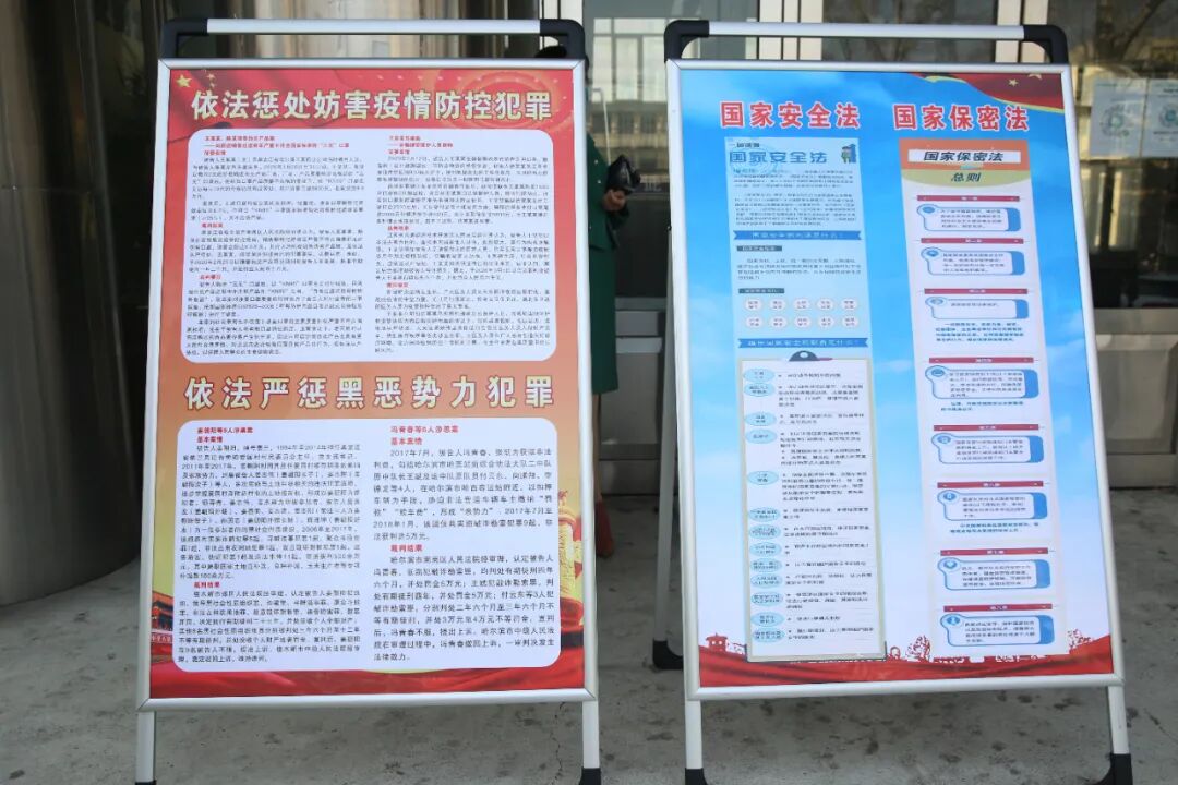 设置宣传展板。在法院办公楼前设置宣传展板,严格落实“谁执法谁普法”普法责任制,向来往群众进行宣传教育。